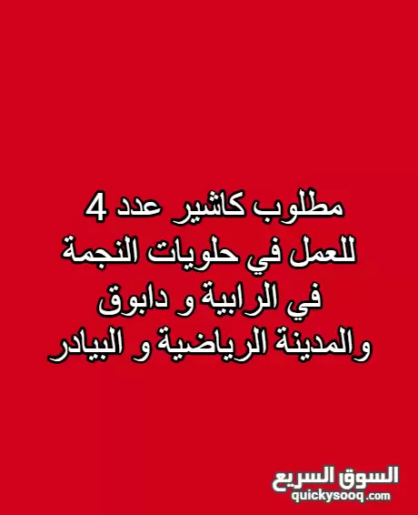 مطلوب كاشير عدد 4 للعمل في حلويات النجمة