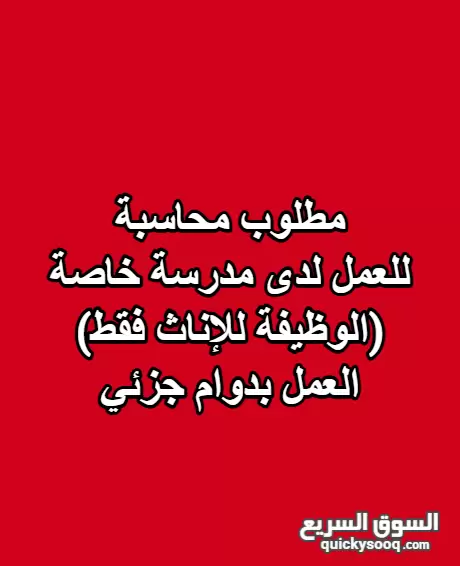 مطلوب محاسبة للعمل لدى مدرسة خاصة (الوظيفة للإناث فقط) للعمل بدوام جزئي