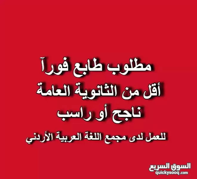 بدون شهادات . و بدون خبرة مطلوب مراسل للعمل لدى مجمع اللغة العربية الاردني