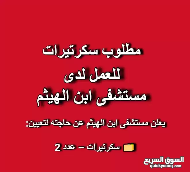 مطلوب سكرتيرات للعمل لدى مستشفى ابن الهيثم