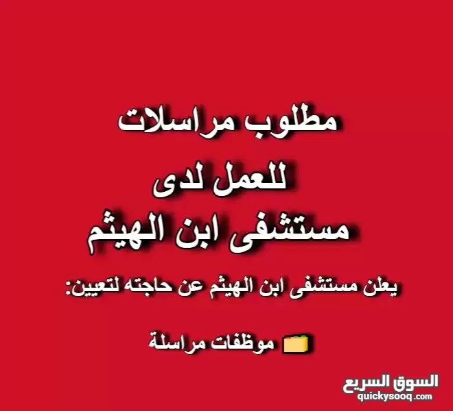 مطلوب مراسلات للعمل لدى مستشفى ابن الهيثم
