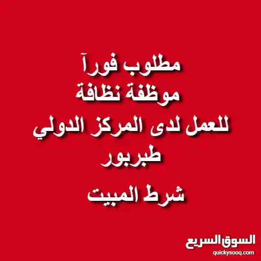 مطلوب موظفة نظافة للعمل لدى المركز الدولي