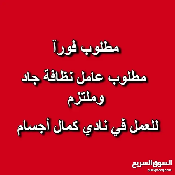 مطلوب عامل نظافة جاد وملتزم للعمل في نادي كمال أجسام