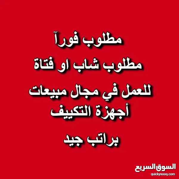 مطلوب شاب أو فتاة للعمل في مجال المبيعات لدى محل تكييف