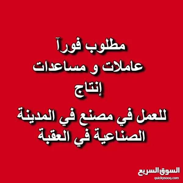 مطلوب عاملات ومساعدات إنتاج للعمل في مصنع في المدينة الصناعية - العقبة