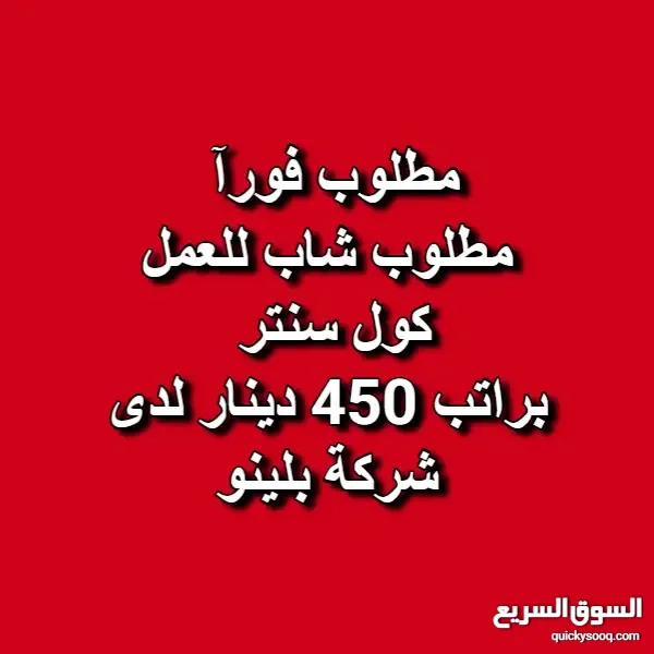مطلوب شاب للعمل فورآ براتب 450دينار مبدئي والتوظيف فوري