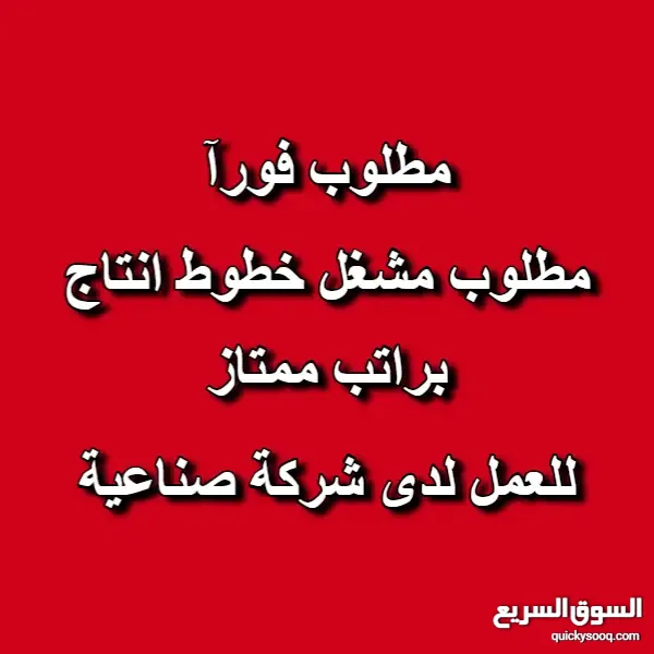 مطلوب شاب مشغل خطوط انتاج للعمل لدى شركة صناعية براتب ممتاز