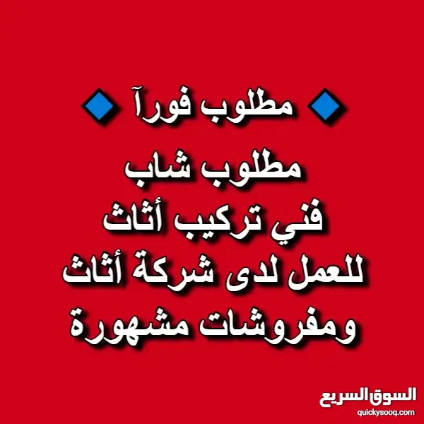 مطلوب شاب فني تركيب أثاث للعمل لدى شركة مفروشات و اثاث مشهورة