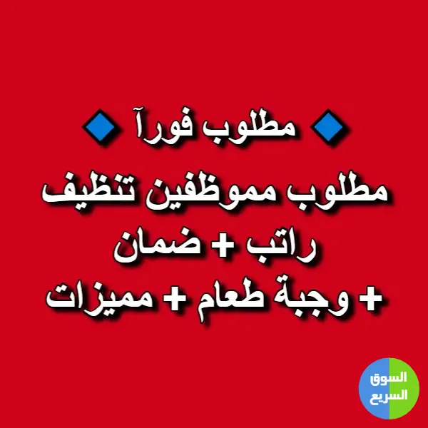 مطلوب موظفين تنظيف (شباب) . راتب + ضمان + وجبة طعام + زيادة راتب عند التثبيت