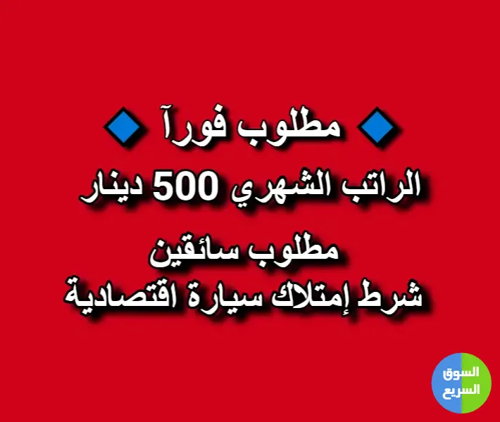 مطلوب سائقين براتب 500 دينار شهري للعمل لدى شركة توصيل شرط إمتلاك سيارة اقتصادية