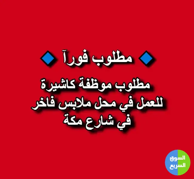 مطلوب موظفة كاشيرة للعمل في محل ملابس فاخر في شارع مكة