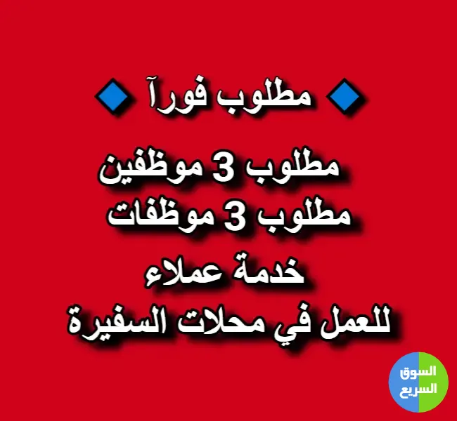 📢 مطلوب موظفين وموظفات للعمل في محلات السفيرة