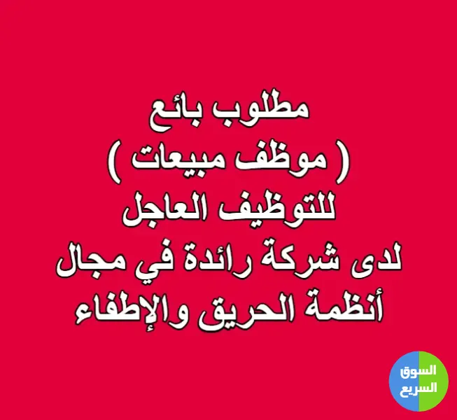 مطلوب بائع ( موظف مبيعات ) ااتوظيف العاجل لدى شركة رائدة في مجال أنظمة الحريق والإطفاء