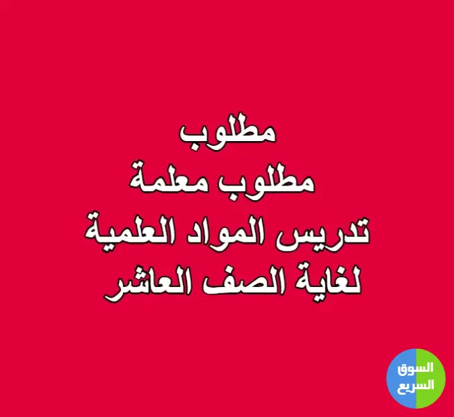 مطلوب معلمة تدريس المواد العلمية لغاية الصف العاشر
