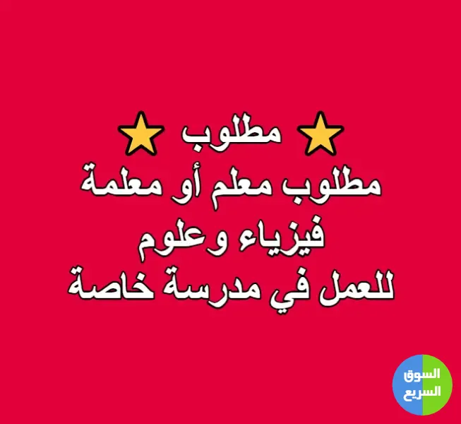 مطلوب معلم أو معلمة فيزياء وعلوم