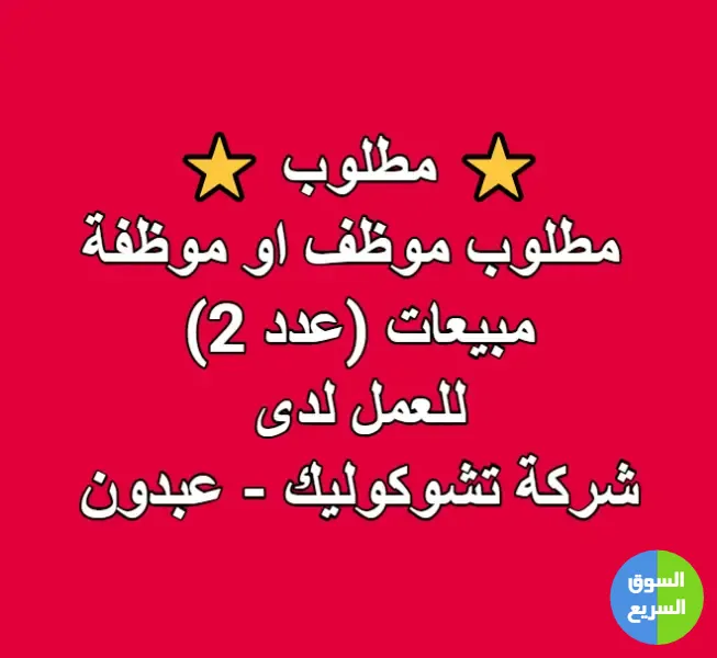 ⭐ تعلن شركة تشوكوليك عن حاجتها إلى موظف/موظفة مبيعات للعمل في عمان – عبدون