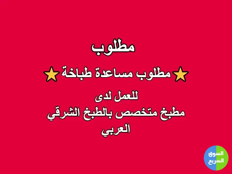 ⭐مطلوب مساعدة طباخة للتوظيف الفوري في مطبخ شرقي عربي⭐