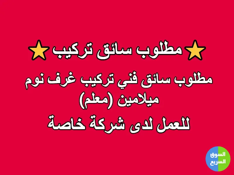 📢 مطلوب سائق فني تركيب غرف نوم ميلامين (معلم)