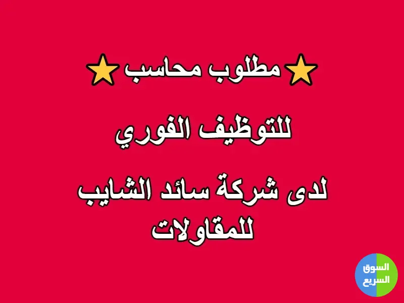 🔹 إعلان توظيف: محاسب – شركة سائد الشايب للمقاولات
