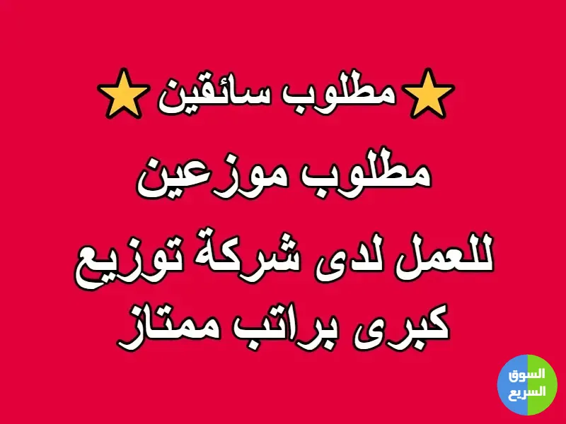 مطلوب سائقين (موزعين) للعمل لدى شركة توزيع كبرى في مختلف مناطق المملكة