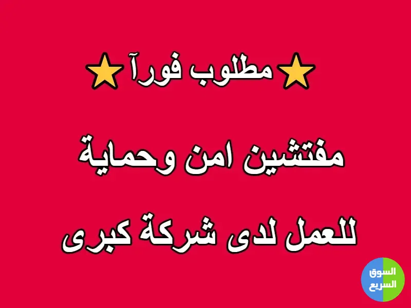 مطلوب فوراً مفتشين أمن وحماية – للعمل لدى شركة كبرى