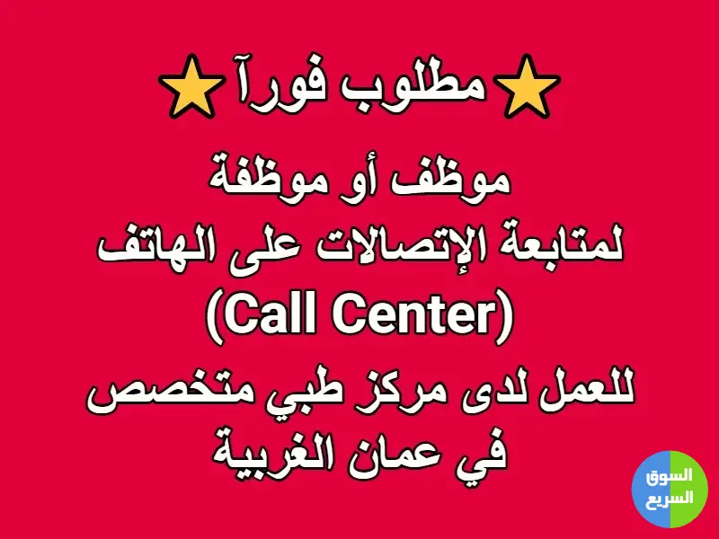 يعلن مركز طبي في عمان – شارع مكة عن حاجته لتعيين موظف / موظفة مركز اتصال (Call Center) وفق الشروط التالية: