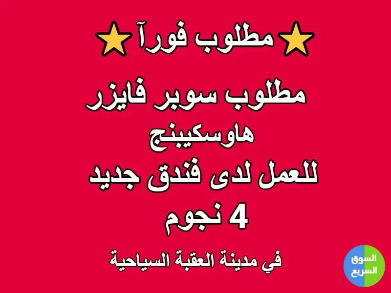 مطلوب سوبر فايزر هاوسكيبج للعمل في فندق جديد