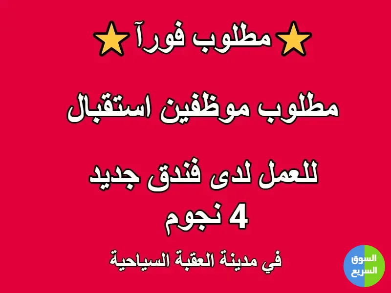 يُعلن فندق أربع نجوم في العقبة عن حاجته إلى موظفي استقبال مؤهلين وذوي خبرة.