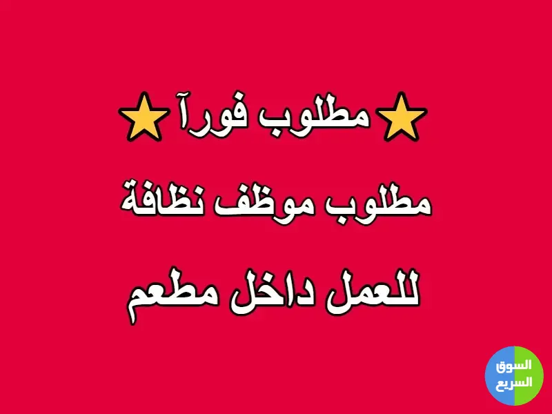 مطلوب شاب مفرغ للتوظيف الفوري : موظف نظافة داخل مطعم