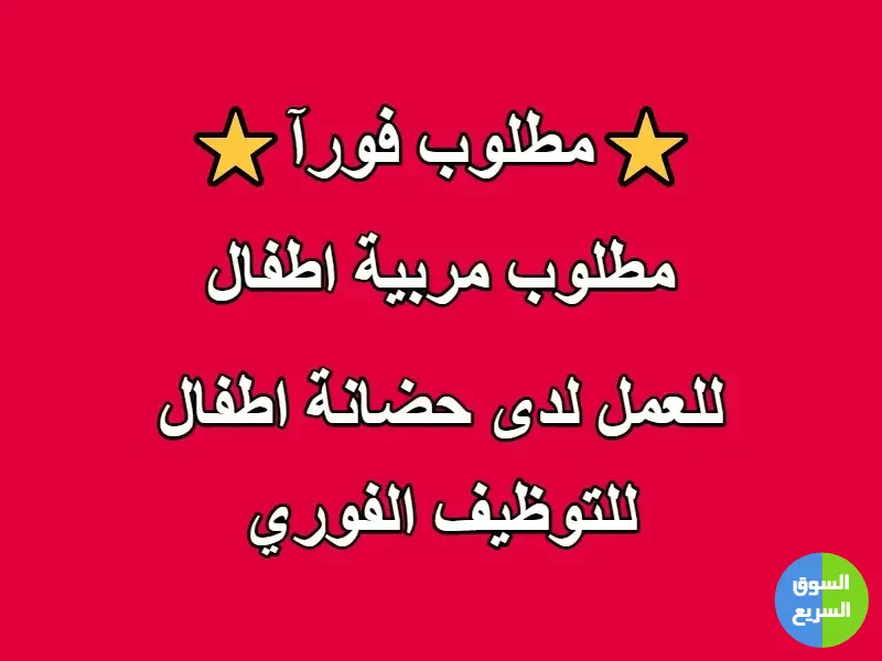 مطلوب مربية أطفال (Pre) للعمل لدى حضانة اطفال
