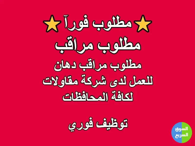 مطلوب مراقب دهان لشركة مقاولات للعمل في كاافة المحافظات