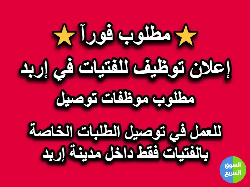 نحن نبحث عن فتيات متميزات للعمل في توصيل الطلبات الخاصة بالفتيات فقط داخل مدينة إربد 💜