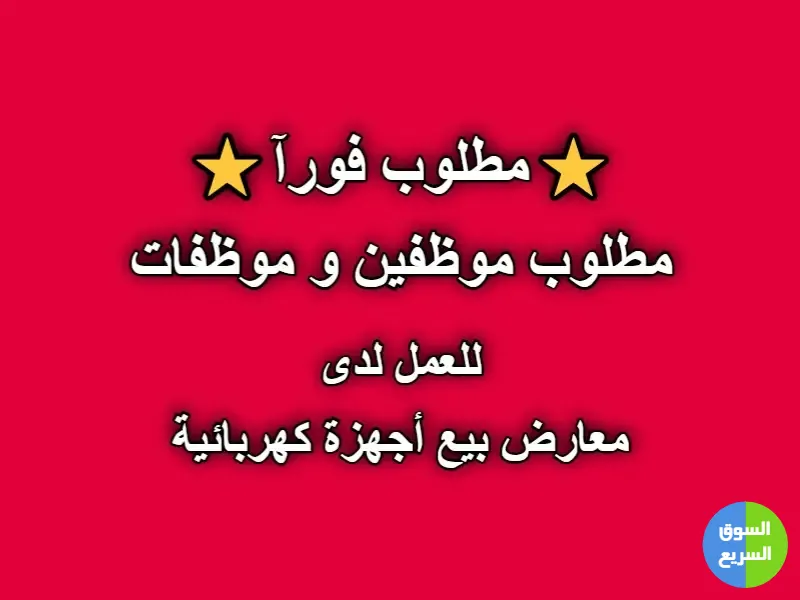 مطلوب موظفين و موظفات مبيعات للعمل في معارض اجهزة كهربائية