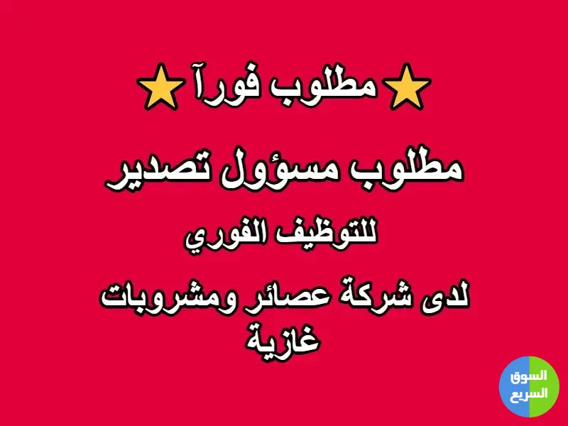 مطلوب مسؤول تصدير – شركة عصائر ومشروبات غازية