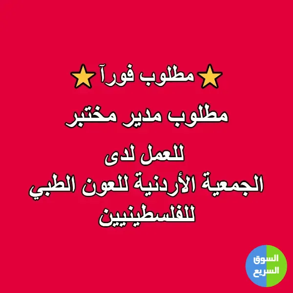مطلوب مدير مختبر للعمل في الجمعية الأردنية للعون الطبي للفلسطينيين – عمان