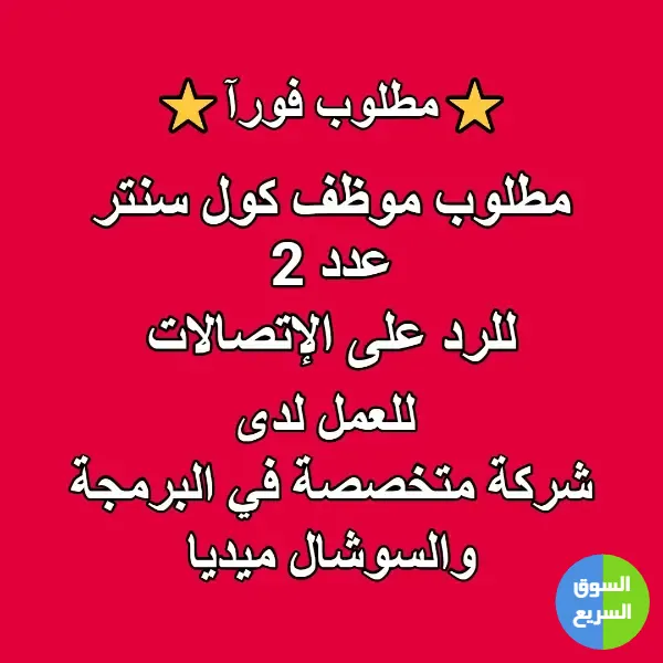 • 💼 المسمى الوظيفي: موظف كول سنتر (عدد 2).