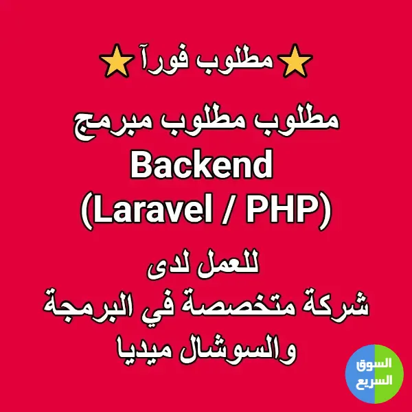 مطلوب مبرمج Backend (Laravel / PHP) للعمل في شركة متخصصة في البرمجة والسوشال ميديا