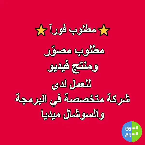 مطلوب مصوّر و منتج فيديو للعمل في شركة متخصصة في البرمجة والسوشال ميديا