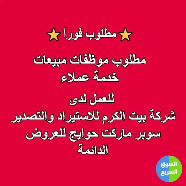 فرص عمل موظفين مبيعات . مطلوب موظفين لمحلات كرز وعنب