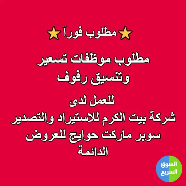 • خبرة سنة على الأقل في تنسيق الرفوف أو التسعير داخل المتاجر