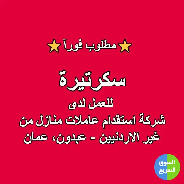 📢 مطلوب سكرتيرة للعمل لدى شركة استقدام عاملات منازل – عبدون، عمان