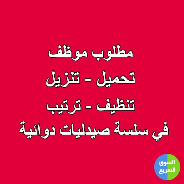 • تعلن سلسلة صيدليات عن حاجتها لتعيين موظف دعم خدمي (تنظيف، تحميل، وتنزيل) للعمل في مستودع أدوية يقع في عمان – شارع المدينة المنورة.