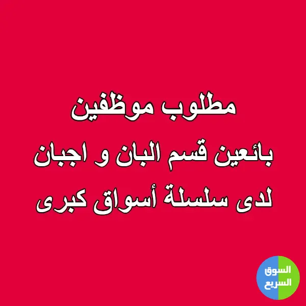 • تعلن سلسلة أسواق كبرى عن حاجتها لتعيين بائعين ديلي لقسم الألبان والأجبان.