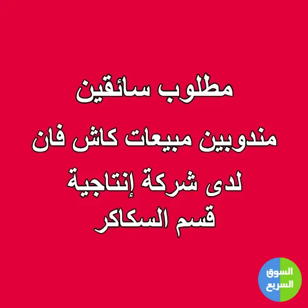 مطلوب سائقين مندوبين مبيعات كاش فان لدى شركة النظام الجيد