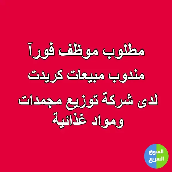 مطلوب مندوب مبيعات كريدت لشركة توزيع مجمدات ومواد غذائية