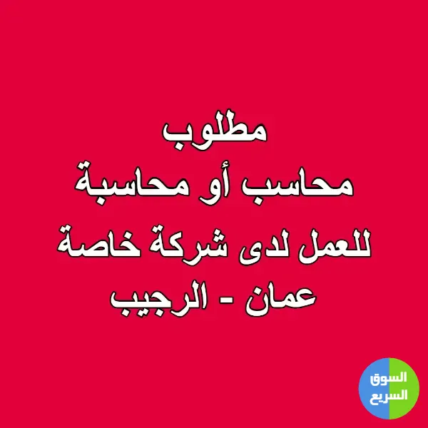 فرصة عمل مميزة – مطلوب محاسبة للعمل في شركة تجارية في عمان (ماركا الشمالية)