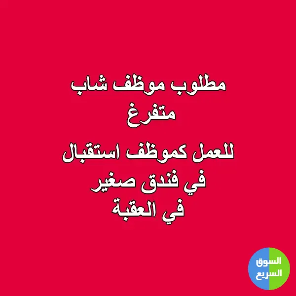 مطلوب موظف شاب متفرغ . للعمل استقبال في فندق صغير في مدينة العقبة