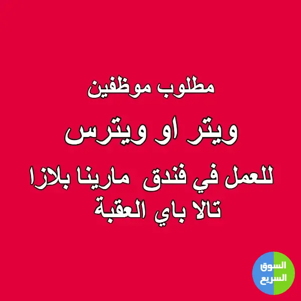 مطلوب ويتر أو ويترس للعمل في فندق مارينا بلازا – تالا باي - العقبة