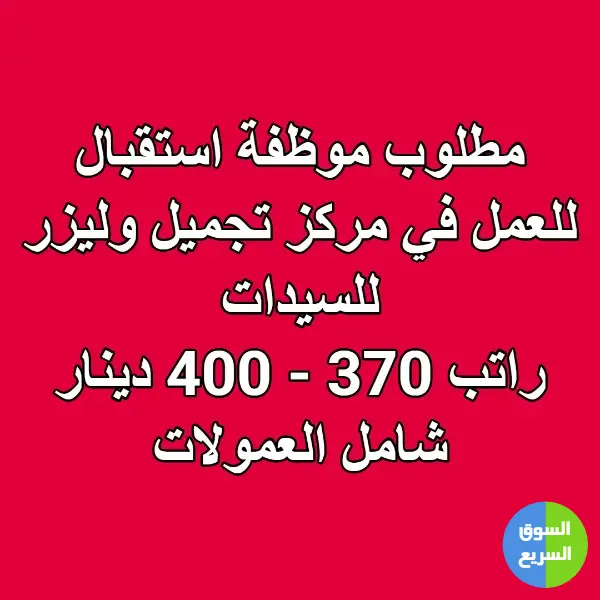 مطلوب موظفة استقبال للعمل في مركز تجميل وليزر للسيدات