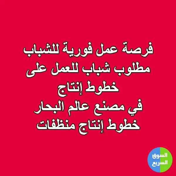 مطلوب شباب للعمل على خطوط إنتاج في مصنع عالم البحار خطوط إنتاج منظفات
